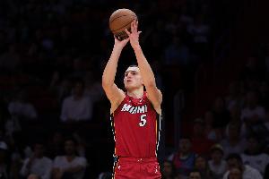热火球员约维奇上半场在进攻端表现出不错手感,而且在冲抢篮板和防守上也都非常积极。