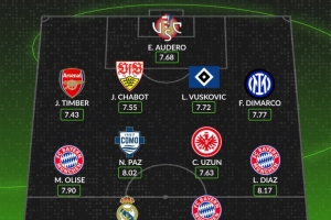 体育资讯10月8日讯 WhoScored根据球员的场均评分列出了本赛季至今五大联赛最佳阵容,姆巴佩、凯恩领衔,迪亚斯、奥利塞、迪马尔科、廷伯在列。
