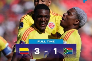 下半场,南非10号球员维拉卡齐在第51分钟点射扳平比分,随后哥伦比亚前锋比拉利尔在第63分钟和伤停补时梅开二度,帮助哥伦比亚3-1赢下比赛。