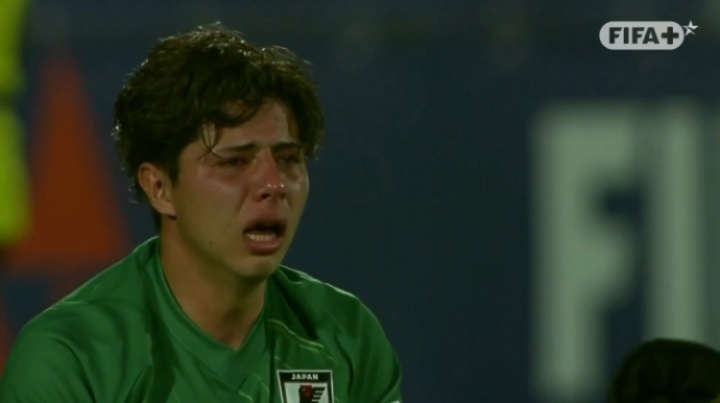 赛后,被淘汰的日本球员纷纷泪洒赛场,被换下的混血门将幸冬堀尾更是痛哭流涕跪地不起。