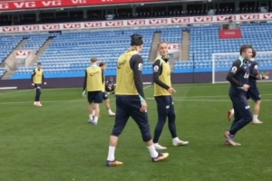 哈兰德随挪威队备战此役,他戴上麦克风参加球队的训练,哈兰德对阿尔茨加尔德在训练赛中的表现不满意,调侃道:“你还好吗,你喝大了?你昨晚做了什么?”