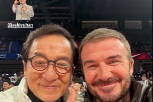 体育资讯10月13日讯 近日,贝克汉姆观看了NBA季前赛,与成龙、姚明、奥尼尔合影。