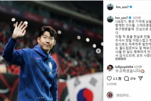 孙兴慜社媒:很自豪为韩国出战138场,我会继续努力备战世界杯