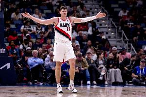 本场比赛,开拓者首发中锋克林根在长人如林的爵士内线群抢到5个前场篮板,活力十足,但与杨瀚森一样同样受到犯规困扰。