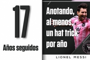 据ESPN统计,这是梅西今年的首个帽子戏法,他连续17年在比赛中戴帽。