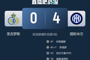 欧冠3连胜!国米4-0圣吉罗斯劳塔罗破门+失单刀皮奥传射+2失空门
